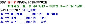 表间公式在模板的设计状态下定义,在填报时实际起作用。其中的“本报表.订单_主表.客户名称”指的是“当前正在填报的这张表单上所输入的客户名称”。它是一个变量,只有在填报的时刻才能确定取值。