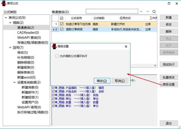 2.选中【提数】下的【普通查询】节点并且勾选右侧需要设置的公式。
