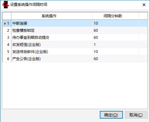 弹出“设置系统操作间隔时间”窗口,在这里可以设置每种操作的间隔分钟数。