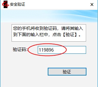 6.在此窗口中且有效期内输入用户收到的短信验证码并点击【验证】。