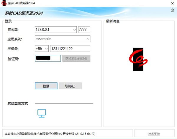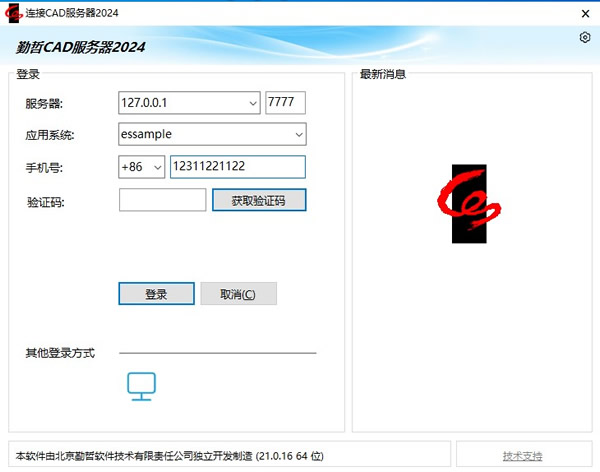 系统已开启短信中心且勾选“支持短信验证登录”选项时,登录窗口显示有手机验证码登录图标。