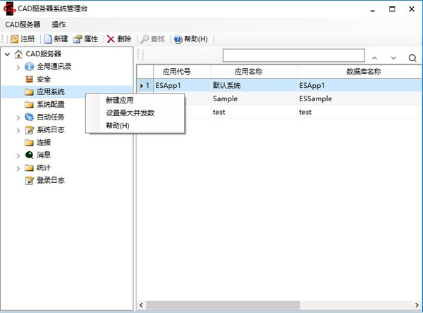 设置方法如下:首先登录系统管理台,在左侧的树形节点中点击“应用系统”,右键-设置最大并发数,如下图所示: