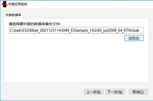 5.点击【浏览】按钮选择要恢复的数据库备份文件,点击【下一步】。